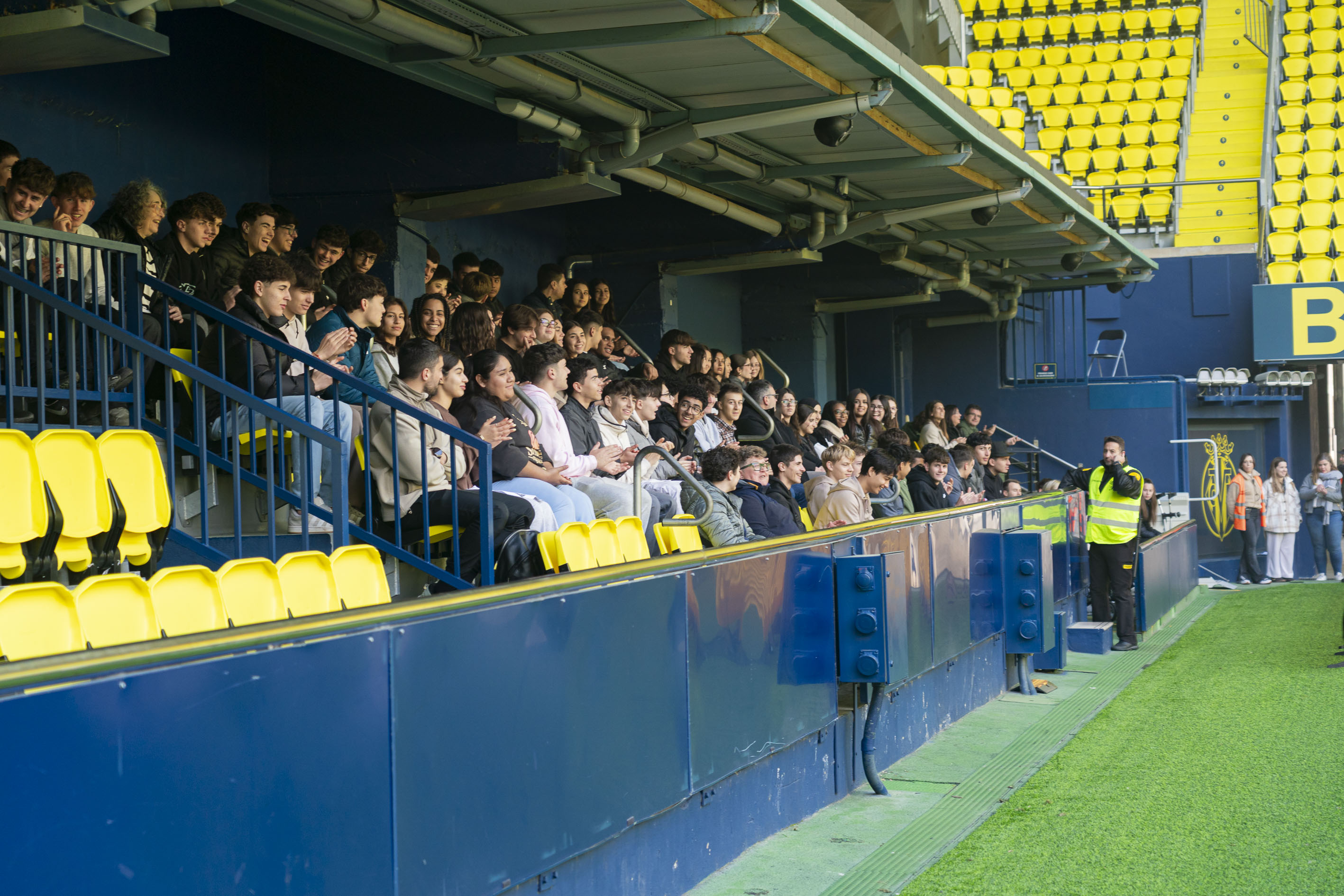 En este ejercicio, que simulaba una evacuación por incendio en la instalación, han participado todos los medios que forman parte del Plan de Actuación de emergencias, además de un centenar de figurantes, personal del club y estudiantes voluntarios del IES Miralcamp de Vila-real, situados en la Grada de Preferencia Baja y la zona de movilidad reducida, puntos concretos donde se ha producido este simulacro de evacuación.
