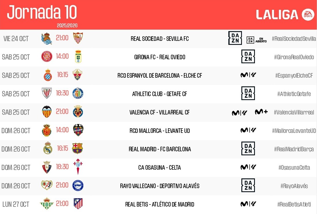 The regional derby against Valencia CF now has an official kick-off time. Villarreal CF will visit Mestalla on Saturday 25th October at 9pm CEST for the clash corresponding to Matchday 10 of the 25/26 LALIGA EA Sports season.