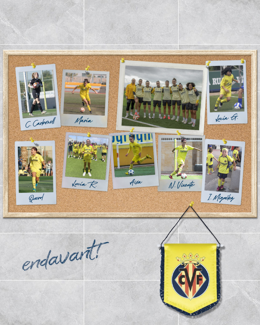 Marta Querol, Aixa Salvador, Lucía Gómez, Irene Miguélez, Nerea Vicente, Lucía Romero, María Romero y Carmen Carbonell, integrantes de la primera plantilla del Villarreal Femenino, han pasado por distintas etapas y equipos del fútbol base amarillo